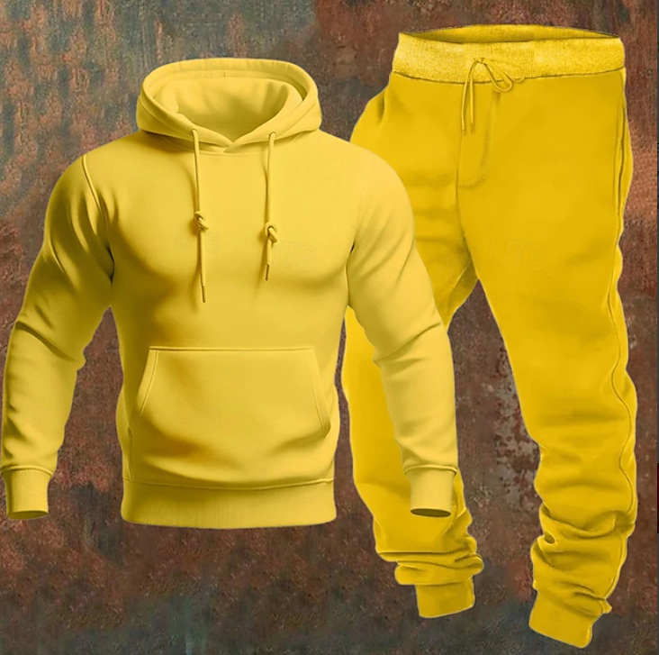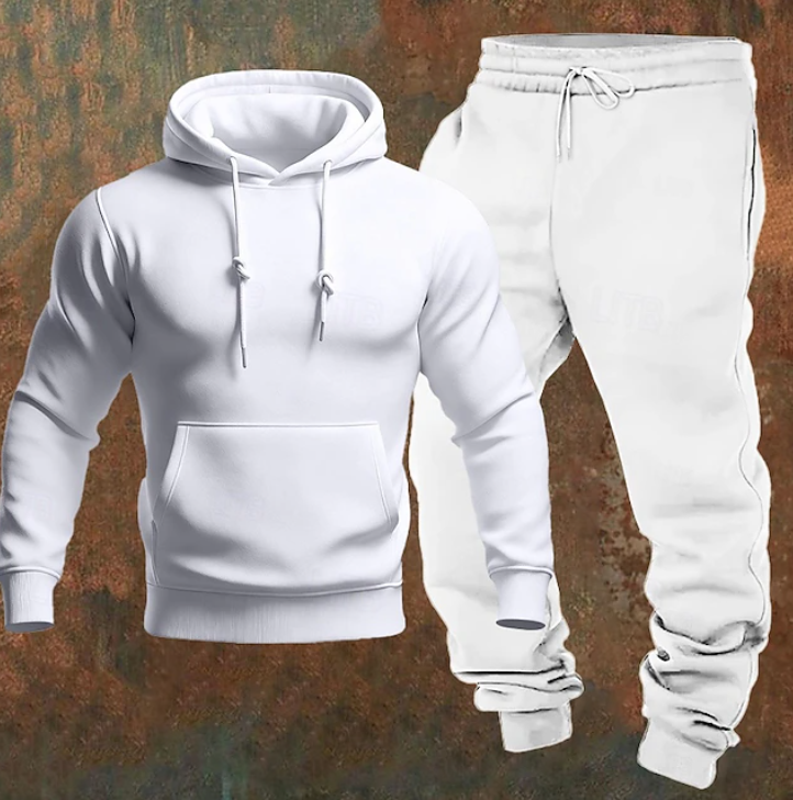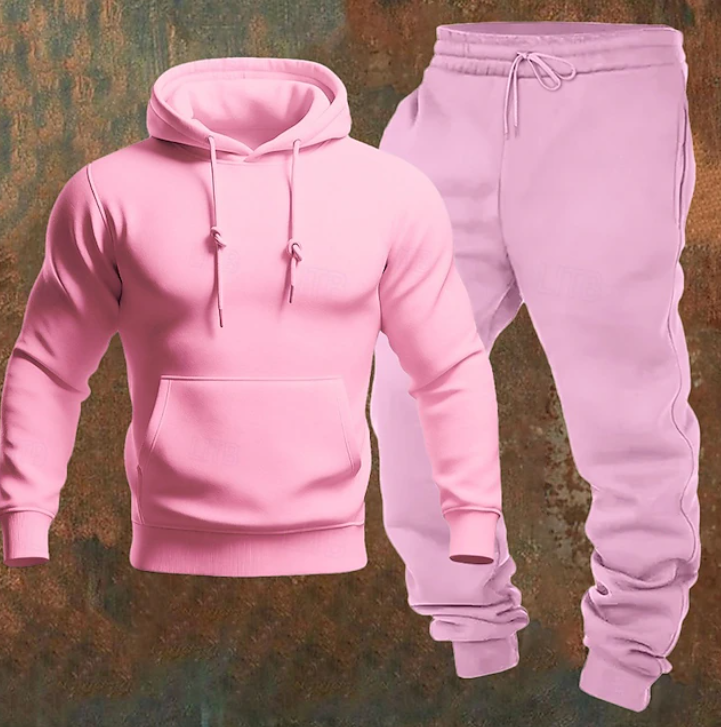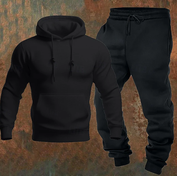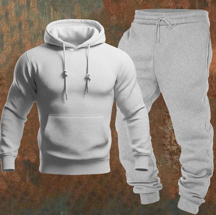 • Design: Minimalist hoodie paired with matching joggers for a cohesive look